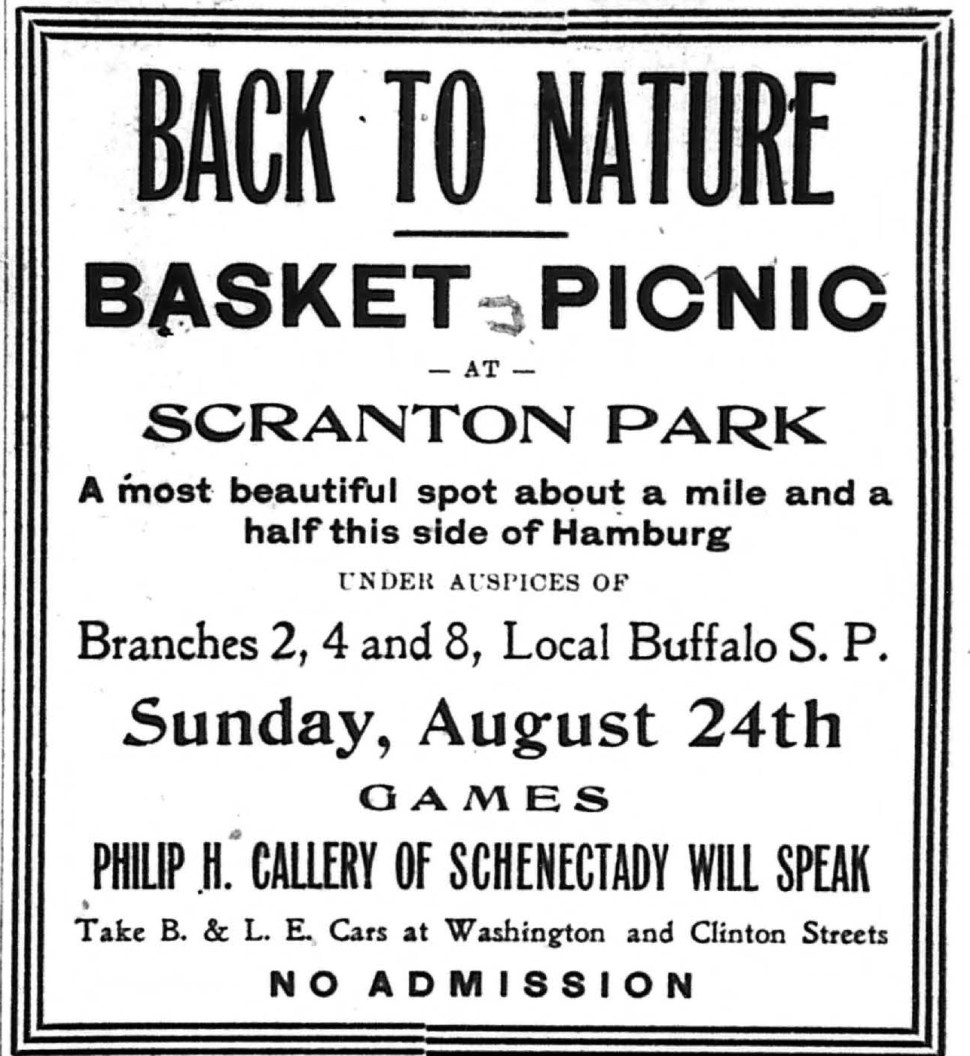 The Sunday School children of Branch One entered a special invitation to the pioneers who attended the first Socialist picnic at Doat and Zelmer streets, to meet and shake hands, congratulate each other and have a rousing celebration at the old picnic grounds next Sunday, August 17th. No event of this year will so forcibly demonstrate the remarkable progress we have made as this outing, arranged and financed by the Socialist Sunday School. The children are going to have the swellest program of music, speaking and sports pulled off in Buffalo this season, and the creditable part of the whole arrangement is the fact that no tickets have been sold, no charge is made for anything, while ample pro- vision has been made for food, drink, sweets and sports. The whole show and side show is free as the pure air surrounding it. While particular attention will be given the children, the comrades who attend will be well taken care of, and ample provision made for the old youngsters who attend.
