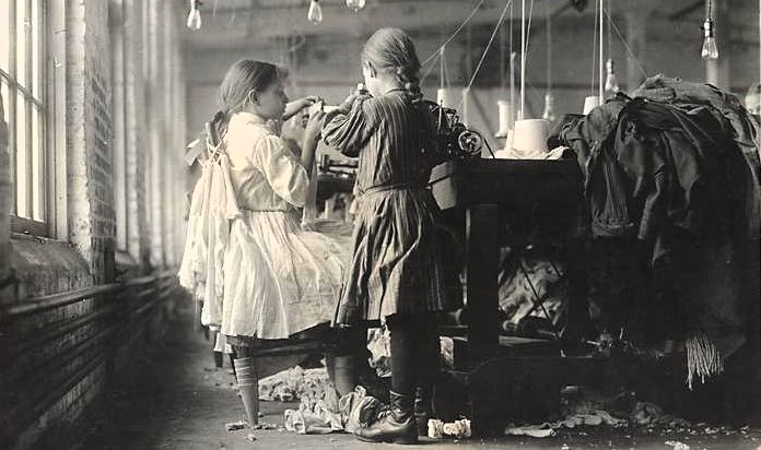When other members of the family are thrown upon the labor market the result is the spreading of the value of the labor power of the husband over the whole family, thus depreciating his own labor power. Proof of this effect of child labor can be obtained by even a cursory examination of the wages of men in industrial centers where child labor prevails. In the cotton mills of the south this is so glaring that the so-called “poor white trash” that furnishes child slaves for the mills actually measure their prosperity by the number of children they have to send into the slave pens. If the number of children is greater than the average, the family income is larger–the parents are so devoid of that which the bourgeoisie like to parade as the parental instinct that they look upon their own children only as adjuncts of machines to be put in operation at the earliest possible moment. Many of these parents were child slaves themselves, marrying in their early teens-many girls become mothers at fourteen in these districts, and deprived of even the rudiments of an education, so they are utterly incapable of properly raising children. As soon as possible after childbirth, these pathetic mothers go back to the looms, while neighbors’ children, not yet old enough to go into the mills, take care of their offspring.