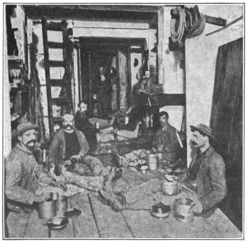 In the bigger towns, like Butte, the miners live in as crowded and insanitary conditions as East Side New Yorkers do. In little company towns, hidden out in the canyons, they live in a “crummy” bunkhouse, and in either case, they do not sleep with air enough around them or heat enough in winter. Then they rush out of their beds, in the middle of the night, maybe, through snow and ice, forty degrees below zero, sometimes, into the cages that take them below. The surface men, ore sorters, engineers on hoist and compressor and pump engines, hoist men themselves, dumpers, carpenters and surface shovelers very seldom go below and do not suffer from hot mines and dust.