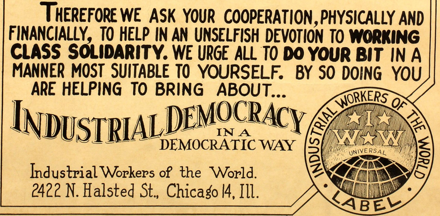The most widely read of I.W.W. newspapers, Solidarity was published by the Industrial Workers of the World from 1909 until 1917. First produced in New Castle, Pennsylvania, and born during the McKees Rocks strike, Solidarity later moved to Cleveland, Ohio until 1917 then spent its last months in Chicago. With a circulation of around 12,000 and a readership many times that, Solidarity was instrumental in defining the Wobbly world-view at the height of their influence in the working class. It was edited over its life by A.M. Stirton, H.A. Goff, Ben H. Williams, Ralph Chaplin who also provided much of the paper’s color, and others. Like nearly all the left press it fell victim to federal repression in 1917.