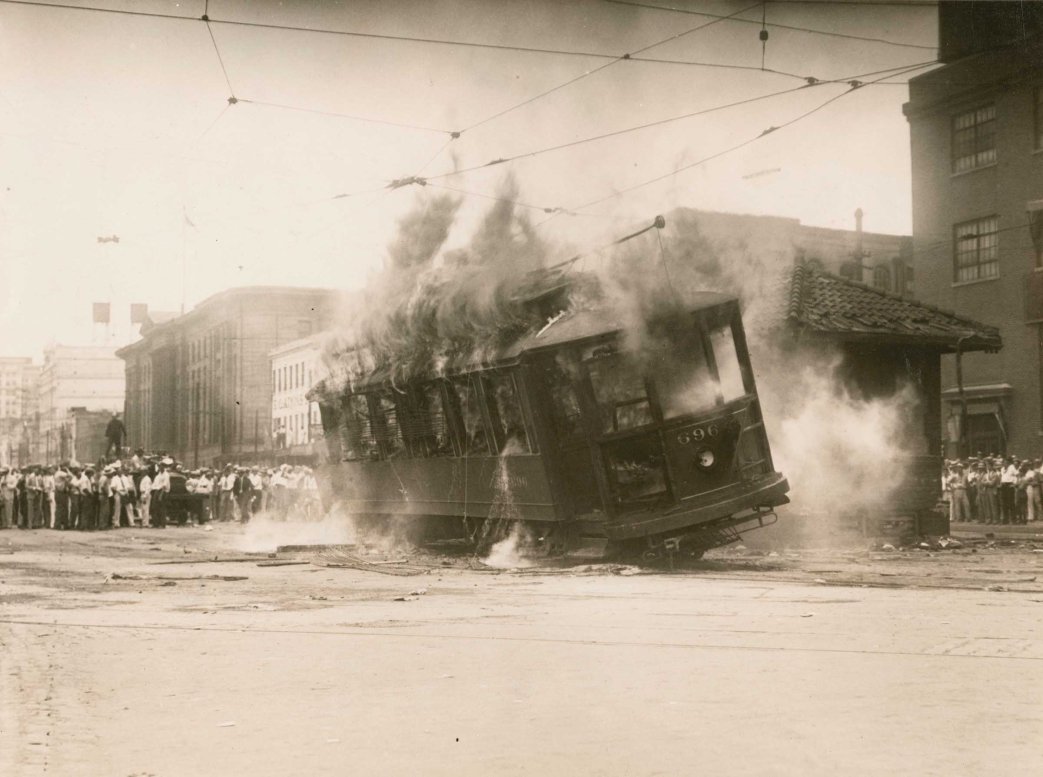 On July 1, 1929 1000 New Orleans street car workers Carmen’s Union, Division 194, A.F. of L. went on strike. Less than a week later pickets attempting to prevent scab cars were fired into by police. Strikers Sylvan Thibodeaux and Joseph Molinerio were killed. The strike would last another four months and ended in defeat and the end of the destruction of the local union.