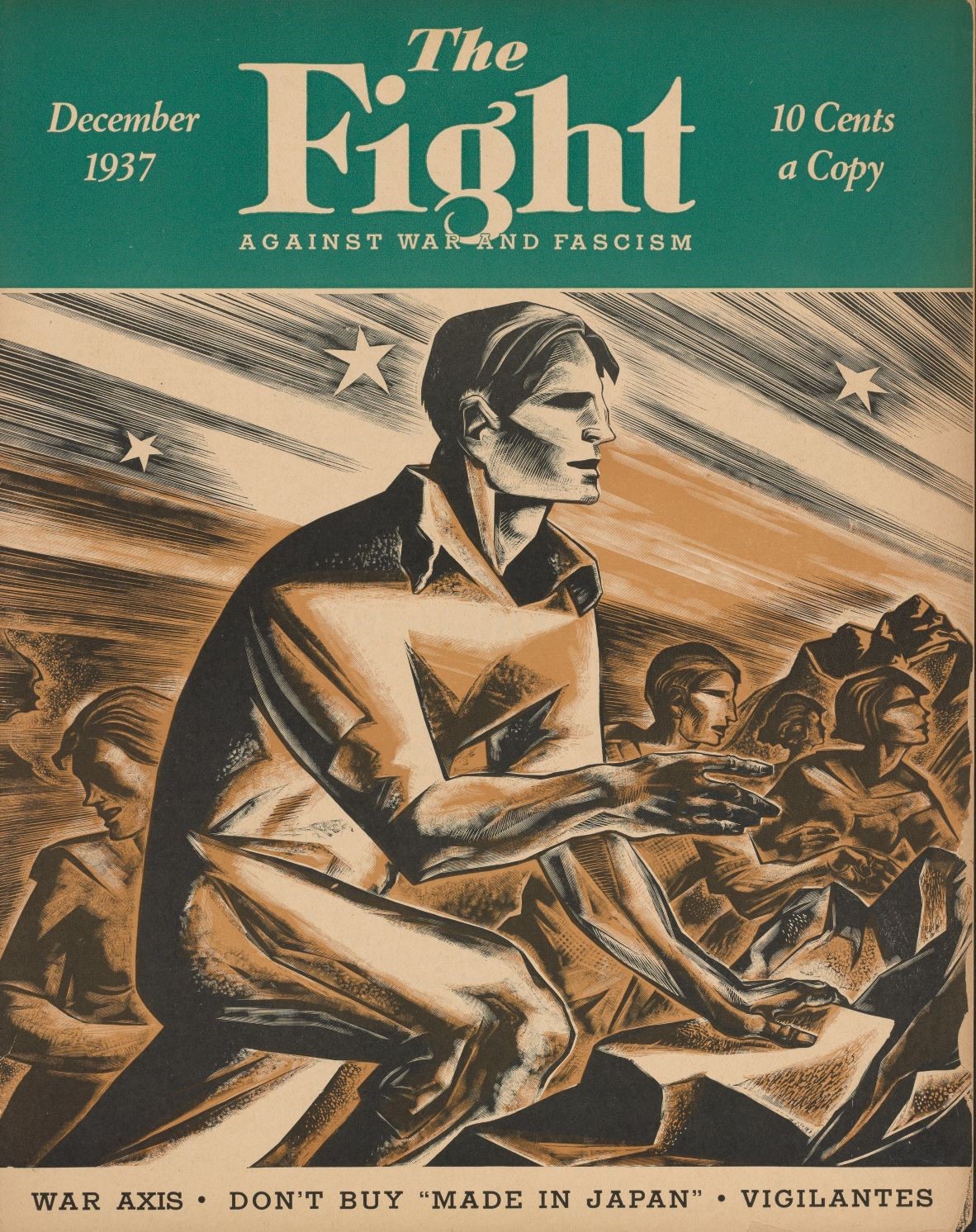 FIGHT Against War and Fascism was the monthly newspaper of the broad-based, but Communist-inspired, American League Against War and Fascism formed in 1933 as Nazism came to power in Germany. The paper and the League attracted fairly wide support and hosted many events in the 1930s. In 1937, reflecting the Popular Front turn, the name of the group was changed to the American League for Peace and Democracy and the journal to The Fight for Peace and Democracy. Both the paper and the organization closed in the wake of 1939’s Molotov–Ribbentrop Pact.