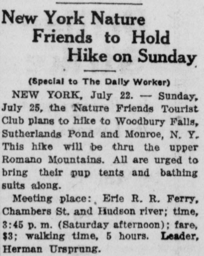 Nature Friends was a working class outdoors social movement begun in Germany in the 1890s and transplanted to the States early on, where it continued for decades. A fine tradition worthy of resurrecting.