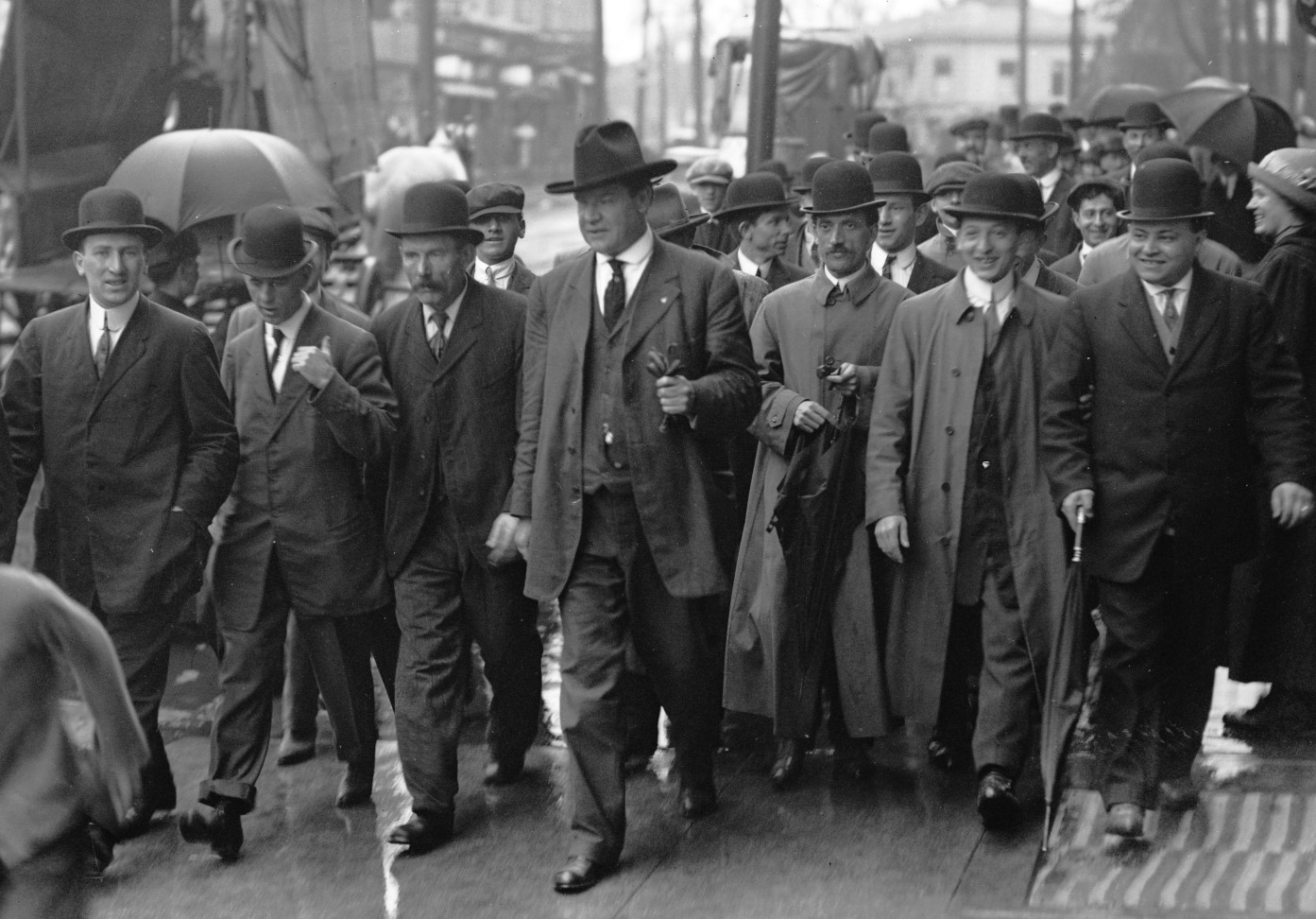 We found the same condition throughout the West. We never had any trouble about closing the mines down; and could keep them closed down for an indefinite period. It was always the craft unions that caused us to lose our fights when we did lose. I recall the first general strike in the Coeur d’Alenes, when all the mines in that district were closed down to prevent a reduction of wages. The mine owners brought in thugs the first thing. They attempted to man the mines with men carrying sixshooters and rifles. There was a pitched battle between miners and thugs. A few were killed on each side. And then the mine owners asked for the soldiers, and the soldiers came. Who brought the soldiers? Railroads manned by union men; engines fired with coal mined by union. men. That is the division of labor that might have lost us. the strike in the Coeur d’Alenes. It didn’t lose it, however. We were successful in that issue. But in Leadville we lost the strike there because they were able to bring in scab labor from other communities where they had the force of the government behind them, and the force of the troops. In 1899 we were compelled to fight the battle over in a great general strike in the Coeur d’Alenes again. Then came the general strike in Cripple Creek, the strike that has become a household word in labor circles throughout the world. In Cripple Creek 5,000 men were on strike in sympathy with 45 men belonging to the Millmen’s Union in Colorado City; 45 men who had been discharged simply because they were trying to improve their standard of living. By using the state troops and the influence of the Federal government they were able to man the mills in Colorado City with scab millmen; and after months of hardship, after 1,600 of our men had been arrested and placed in the Victor Armory in one single room that they called the “bullpen,” after 400 of them had been loaded aboard special trains guarded by soldiers, shipped away from their homes, dumped out on the prairies down in New Mexico and Kansas; after the women who had taken up the work of distributing strike relief had been placed under arrest–we find then that they were able to man the mines with scabs, the mills running with scabs, the railroads conveying the ore from Cripple Creek to Colorado City run by union men, the connecting link of a proposition that was scabby at both ends! We were not thoroughly organized. There has been no time when there has been a general strike in this country.