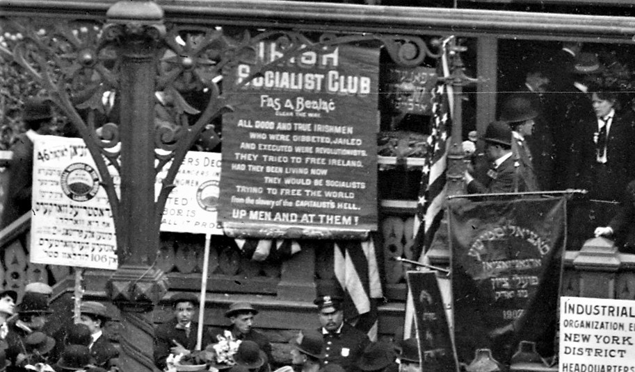 Fellow Workers: As all the political forces of the United States are busily engaged to-day in lining up for the great conflict of the Presidential election of 1908 as on every hand there is a measuring of strength, a scanning of “issues” and a searching of souls, we desire on our part to approach you for the purpose of obtaining your earnest consideration of our principles before determining where to cast your support in the campaign. Let us reason quietly together! We speak to you as fellow workers and as fellow countrymen, and we ask where do you stand in politics today? Hitherto the Irish in the United States have almost entirely supported the Democratic party, but the time has come when the majority of thoughtful Irishmen are beginning to realize that as the causes that originally led to that affiliation are now no longer existent, the affiliation itself must be reconsidered. Political parties must thrive or fall according to the present development of the class in society they represent. and cannot be kept alive by a mere tradition of their attitude in past emergencies. The antagonism of the Democratic party towards the Know Nothing movement in the past won for it the support of the Irish workers, but Know Nothingism is not an issue today, and as the Democratic party is going down to an unhonored grave because of its inability to grasp the problems of our own time shall we Irish workers suffer ourselves to be dragged to social perdition with it?