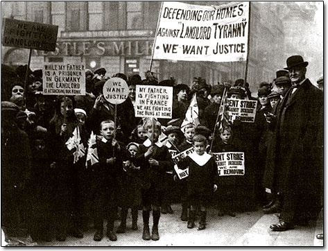 The rent strike was typical. In 1915 when munition workers began to stream into the city, there was an attempt to raise rents. But the women, wives of soldiers and munition workers, wouldn’t hear of it. They refused to pay more rent and when ordered out of their flats they refused to move. Suddenly, within six hours, there appeared in windows all over the city, placards announcing in big red letters their calm defiance of law and authority, “RENT STRIKE. WE ARE NOT REMOVING.” They meant what they said. In each house one woman would be stationed as a picket to watch for trouble. On the approach of landlord, sheriff or rent collector, she would give the warning and twenty or thirty angry women would run out of their apartments and meet him on the stairs, sometimes armed with flour, sometimes with water, sometimes just with words. In any case he retired. It looked as though it would take machine guns to get any of these women out of their apartments. Finally, however, ten were arrested. When word was carried to the engineers in the shops that these women were on trial before the Sheriff for refusing to be evicted, they dropped their tools and came running in thousands to the Sheriff’s office. They gathered on the square outside, a great threatening determined mob, with John Maclean standing up somewhere, exhorting them, “Now you’re out, let the war go to hell!” The Sheriff telephoned in haste to London, and then adjourned the case.