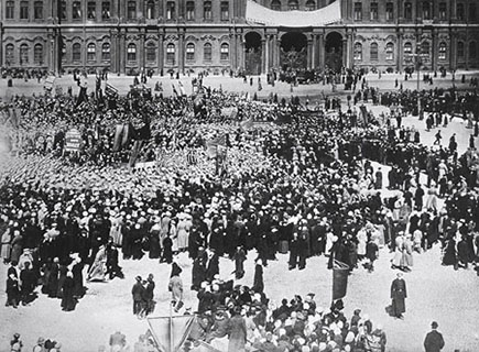 Comrade N. Trotsky, who is imbued with the new spirit, frequently encounters the resistance and the misunderstanding of the “specialists” in this matter. Here, as in all other things, the work of revolutionary creation cannot be accomplished in one day nor brought about by any sudden shock. The good will of the people will not be found lacking: in its desire to obtain instruction and develop its mind, it will respond enthusiastically to every attempt in this direction. Although the population of Petrograd has gone down more than half, and although the Ermitage is now open only twice a week (instead of six times before the war), the number of visitors is about ten thousand a month, while it was eighteen thousand before the war; in other words, the relative number has increased considerably.