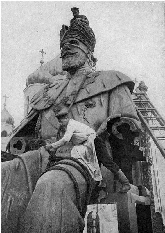 Certain modern statues of Russian generals that were particularly hated as representatives of the tsarist régime of oppression of the people have been destroyed, but none of them was of any real artistic value. The painted and carved effigies of the former rulers were saved wherever they had any esthetic value, and the losses in this field are insignificant.