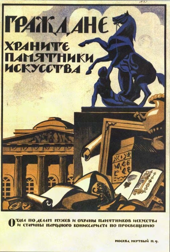 My task will therefore be limited by the very nature of the case, and when I start out to speak of the present day art in Soviet Russia I shall be obliged to consider particularly the two modes of action that are now possible; the preservation of the monuments of existing art, and the effort to educate, to prepare for the creation of new works; preservation of the past and preparation for the future, these two ideas fully embrace the tasks now facing the guiding spirits of the Russian Revolution. I shall take up these two points in order.