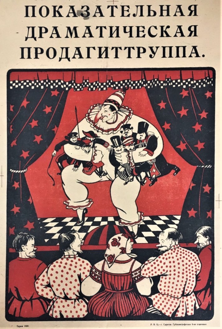 At any moment, the theatrical calling becomes apparent in the bosom of the masses; therefore the Soviet Republic has done everything in its power to encourage the growth and recognition of such talent. It is one of the principal tasks of the institution destined to develop proletarian culture (an institution called for short Prolekult) to seek out those of artistic talent and to furnish them the means of expressing this talent.