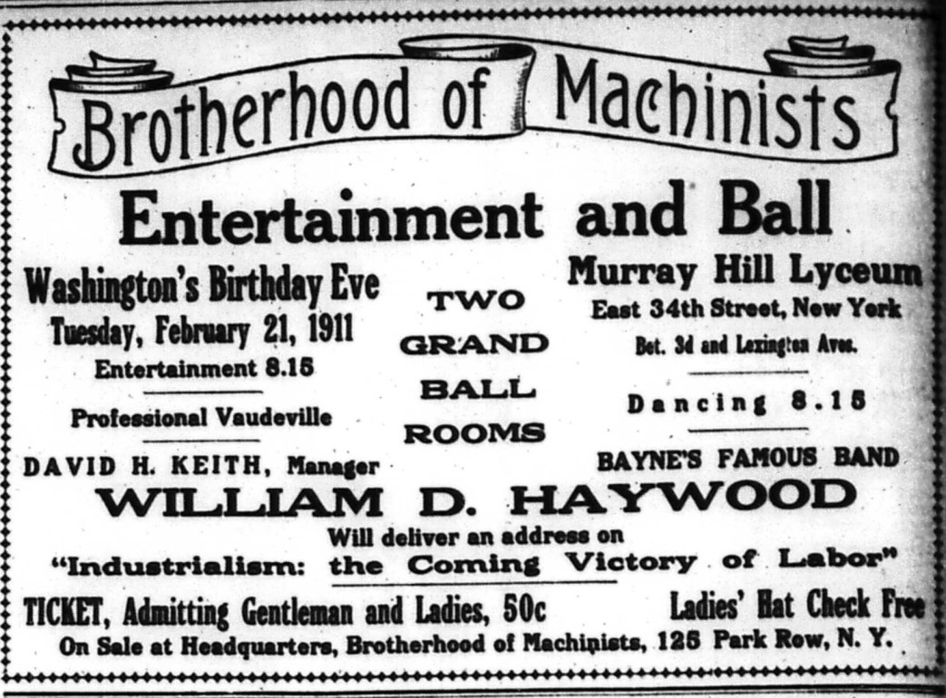 ‘Haywood At Great Machinists’ Ball’ from the New York Call. Vol. 4 No. 53. February 22, 1911.