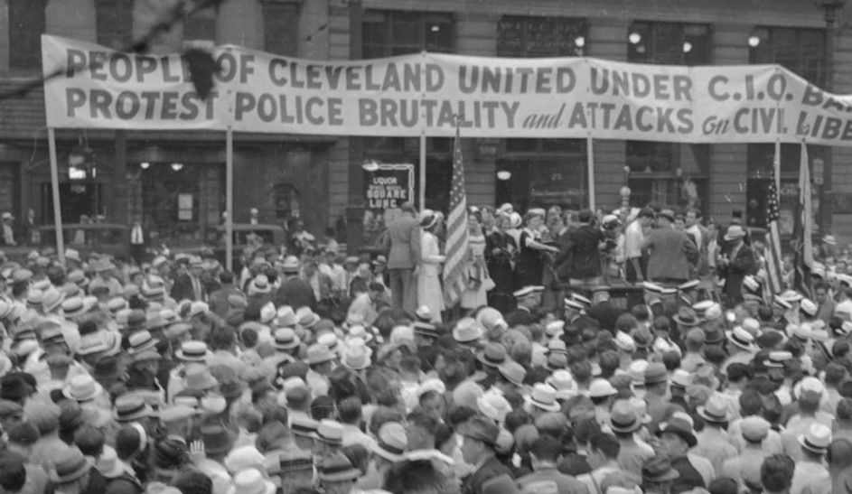 From scores of miles away, all through the night of the 21st, thousands of workers began to pour into Youngstown to aid the Youngstown steel workers. By morning, they represented a huge army, determined to fight and prepared to fight. Rubber workers from Akron, men from Canton, miners from Pennsylvania, steel workers from Sharon, Newcastle, Pittsburgh, Aliquippa.
