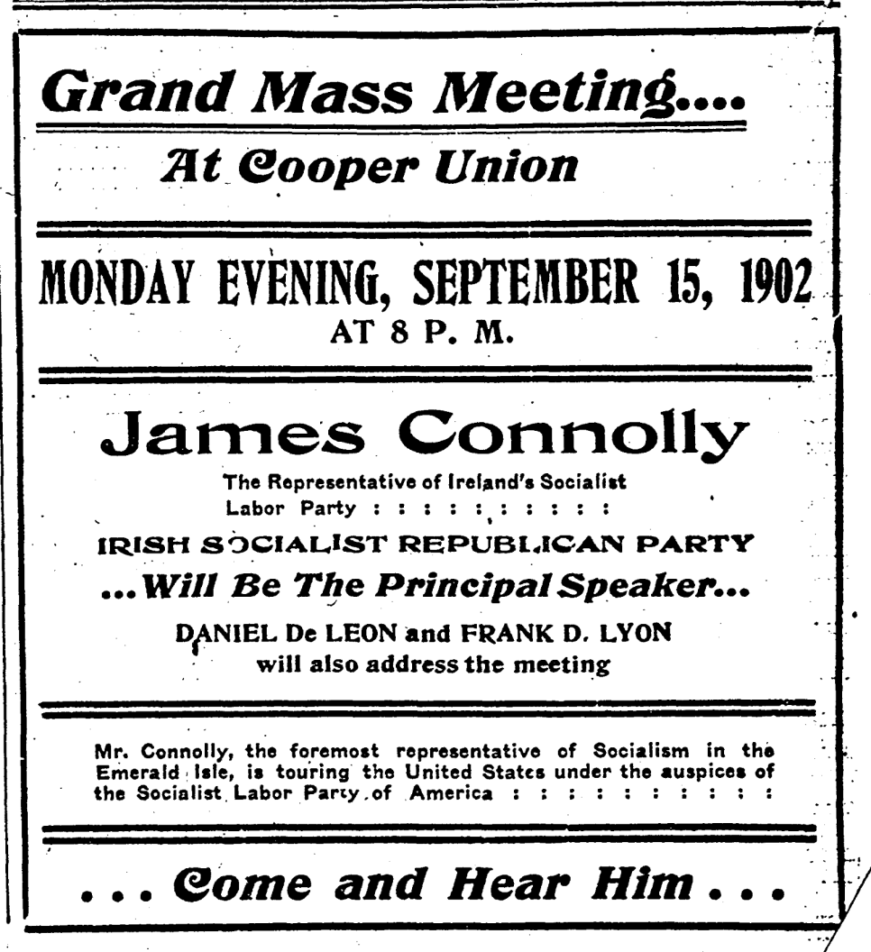 ‘Welcome to the Soldier from Ireland—James Connolly Arrives on These Shores’ from The Daily People. Vol. 3 No. 74. September 12, 1902.