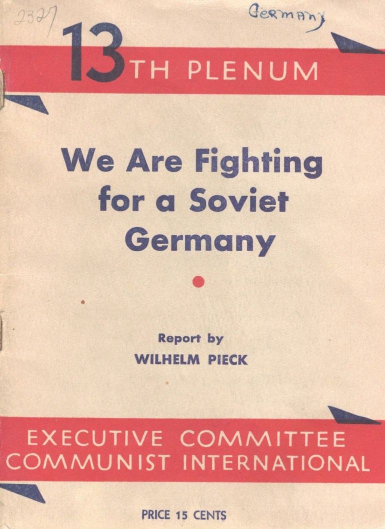 We are Fighting for a Soviet Germany by Wilhelm Pieck. Workers Library Publishers, New York. 1934.