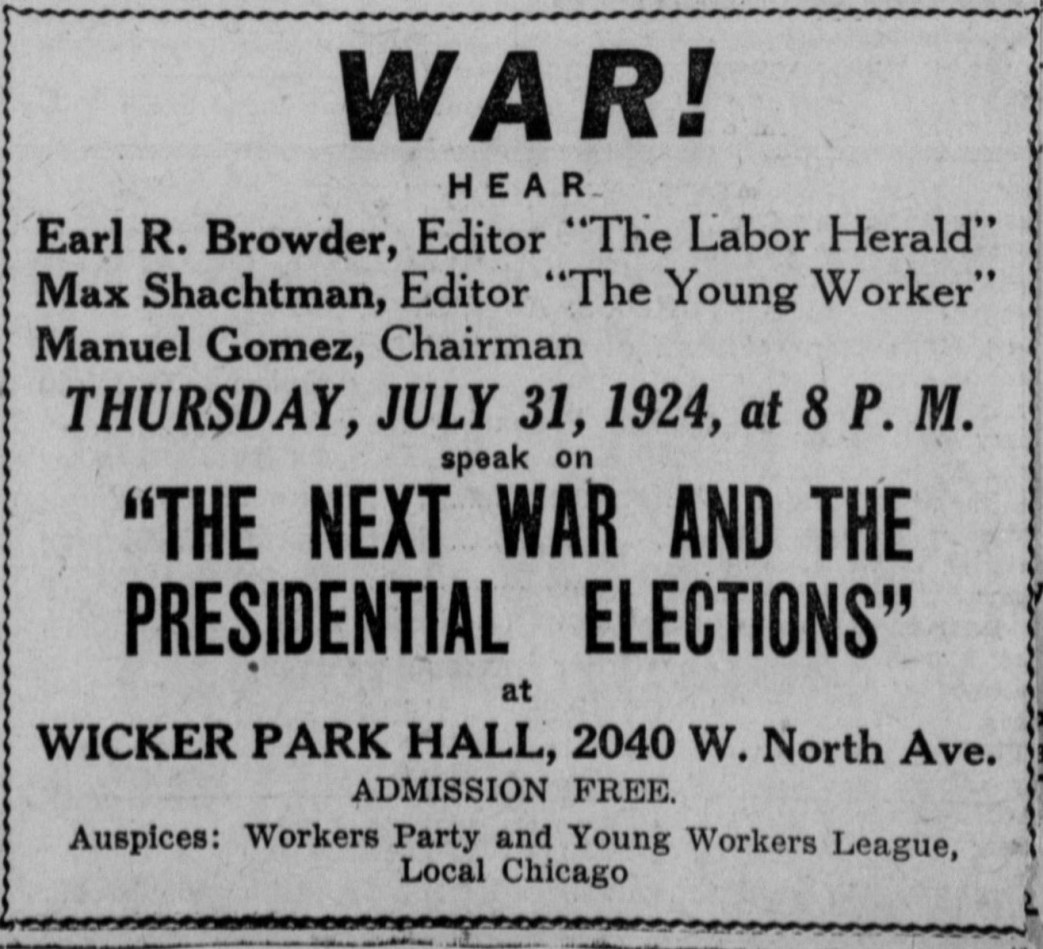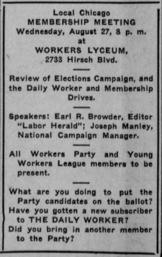 ‘Party Activity in Chicago’ from The Daily Worker. Vol. 2 No. 134. August 23, 1924.