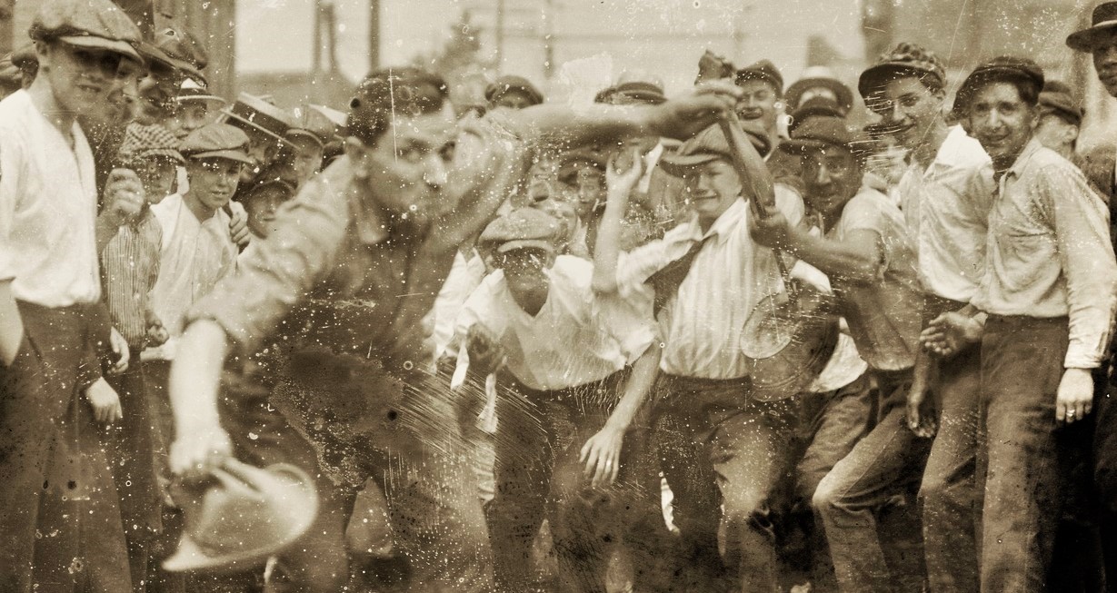 So, though the streets are quiet, everyone is on the defensive; everyone seems to be waiting apprehensively for some- thing to happen. The strike district from the Hook to Avenue C is full of these groups of anxious people. Something strange is in the air. Calamity seems to threaten. The quiet is not the quiet of Sunday, but rather of a witch’s Sabbath.