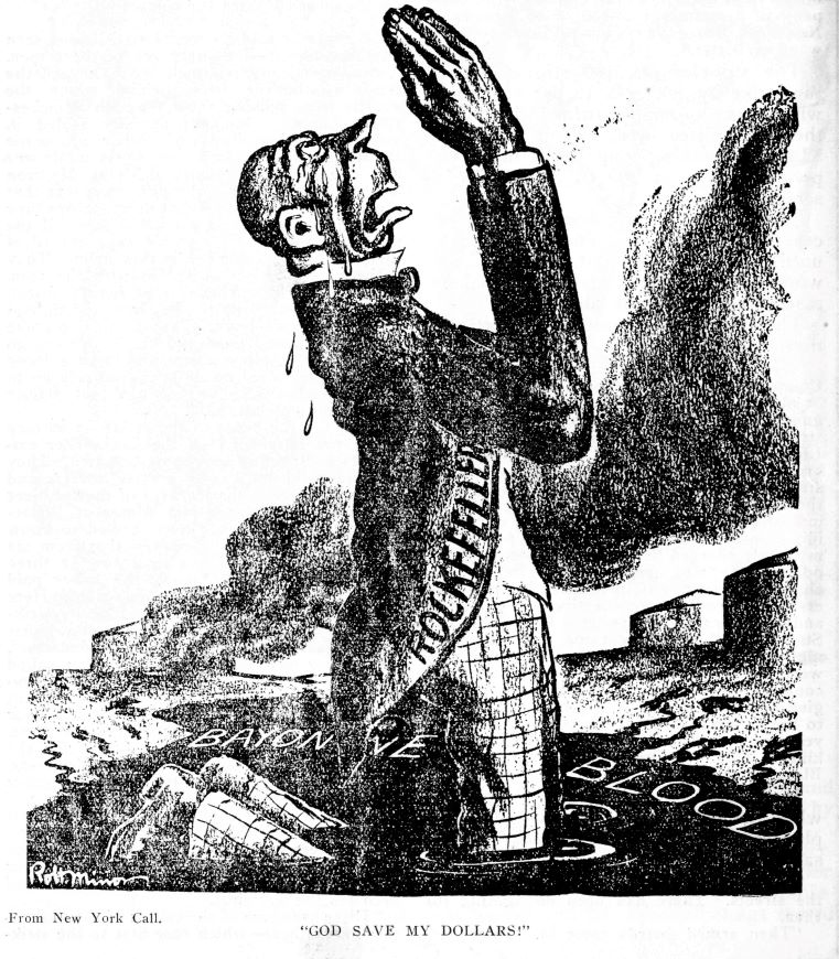 They are bitter against the company that will not give them a fair hearing; and it is the opinion of the strikers’ attorney, J. H. Dougherty, that had the strikers’ representatives been received by Mr. Hennessy the trouble might have been averted. They are also bitter against the press, which they feel has not tried to find out their side, which has magnified their violence and overlooked the violence of the police. They have offered to co-operate with the director of public safety in keeping order and to patrol their own streets. And this offer has been refused, and at present they cannot congregate to discuss their affairs. Early next week Mr. Dougherty is going to New York with the strike representatives to present their demands at John D. Rockefeller’s main office. He looks forward hopefully to settling the difficulties in this way.