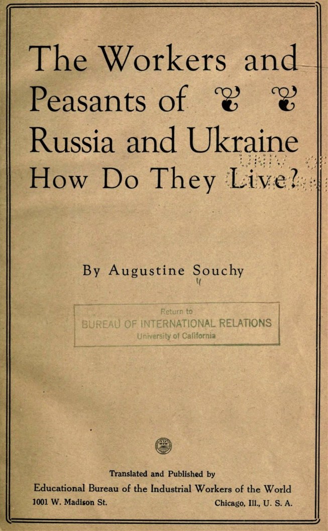 The Workers and Peasants of Russia and Ukraine: How Do They Live? by Augustine Souchy. Translated and Published by Educational Bureau of the Industrial Workers of the World, Chicago. 1922.