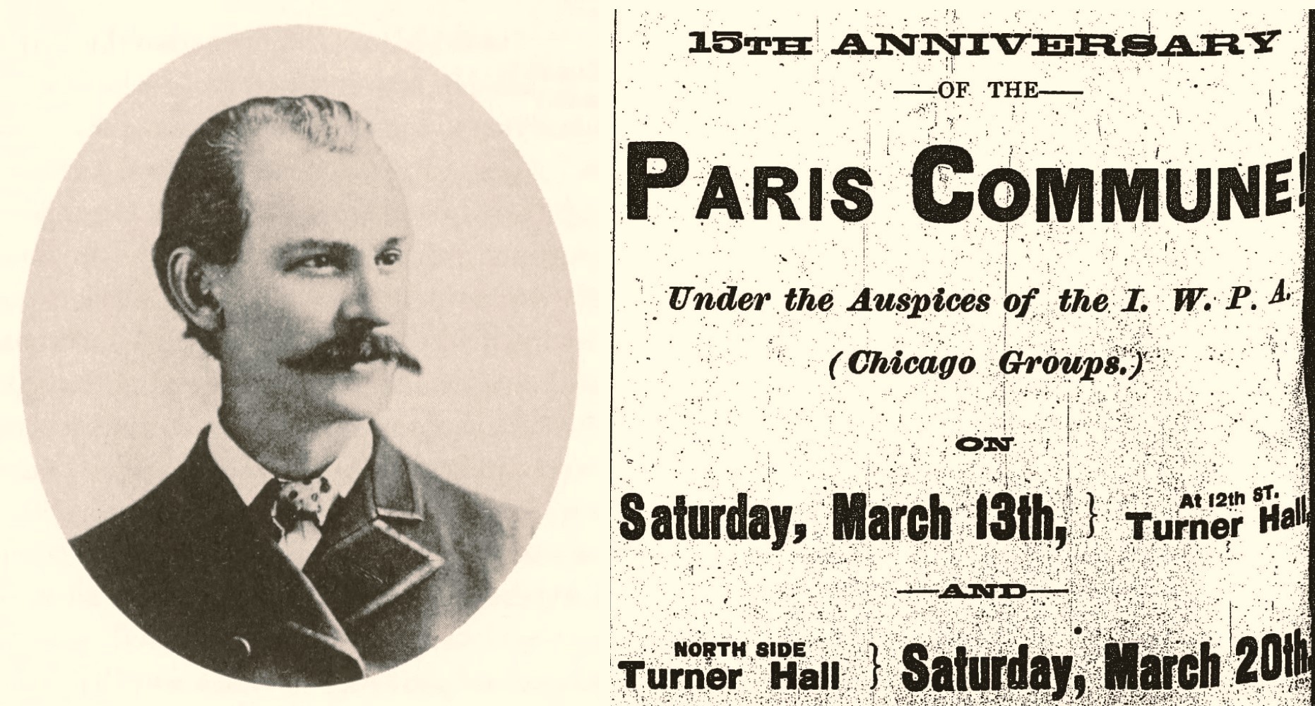 The record of a moment with real historical meaning as martyrs of two continents meet. Only fifteen years after the Commune, and just weeks before Haymarket, 1,500 Chicago revolutionaries were addressed by the soon-to-be executed Albert Parsons as the International Working People’s Association gathered at the city’s Turner Hall to commemorate the workers of Paris.