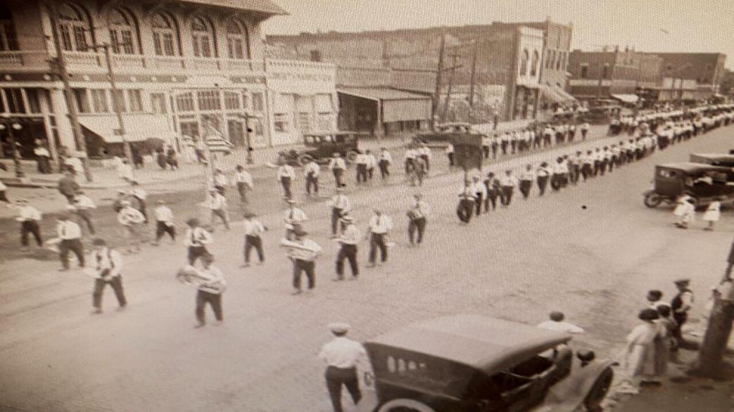 About 25 armed miners marched much more than their own number of scabs, and guards, with McDowell and his assistant superintendent, down the road.
