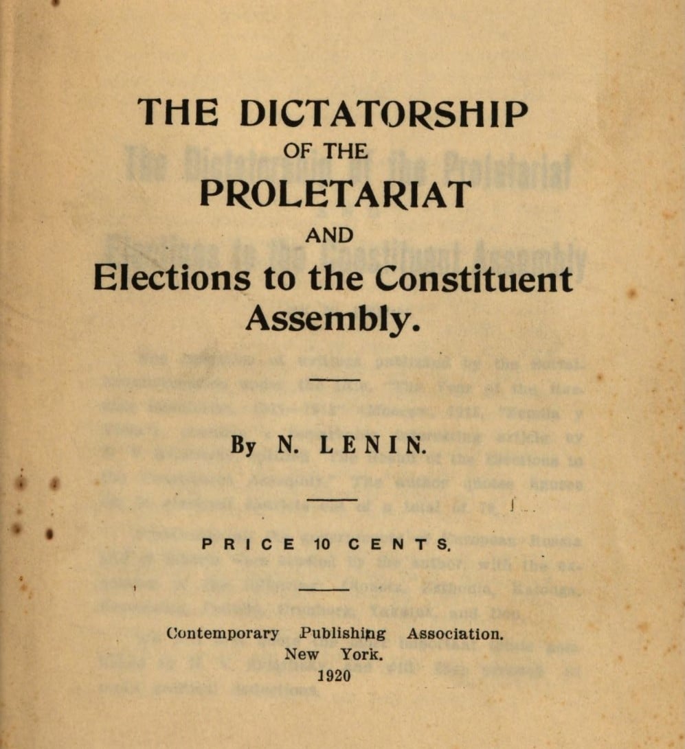 The Dictatorship of the Proletariat and Elections to the Constituent Assembly by N. Lenin. Contemporary Publishing Association, New York. 1920.