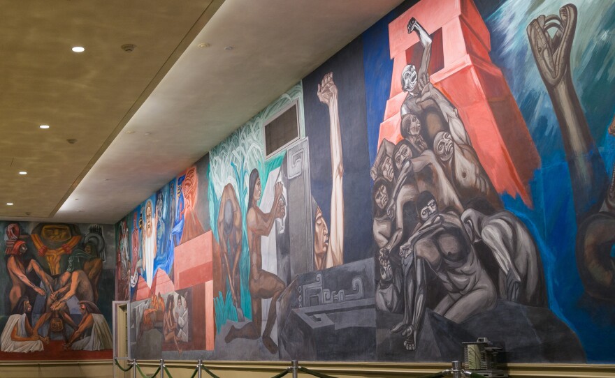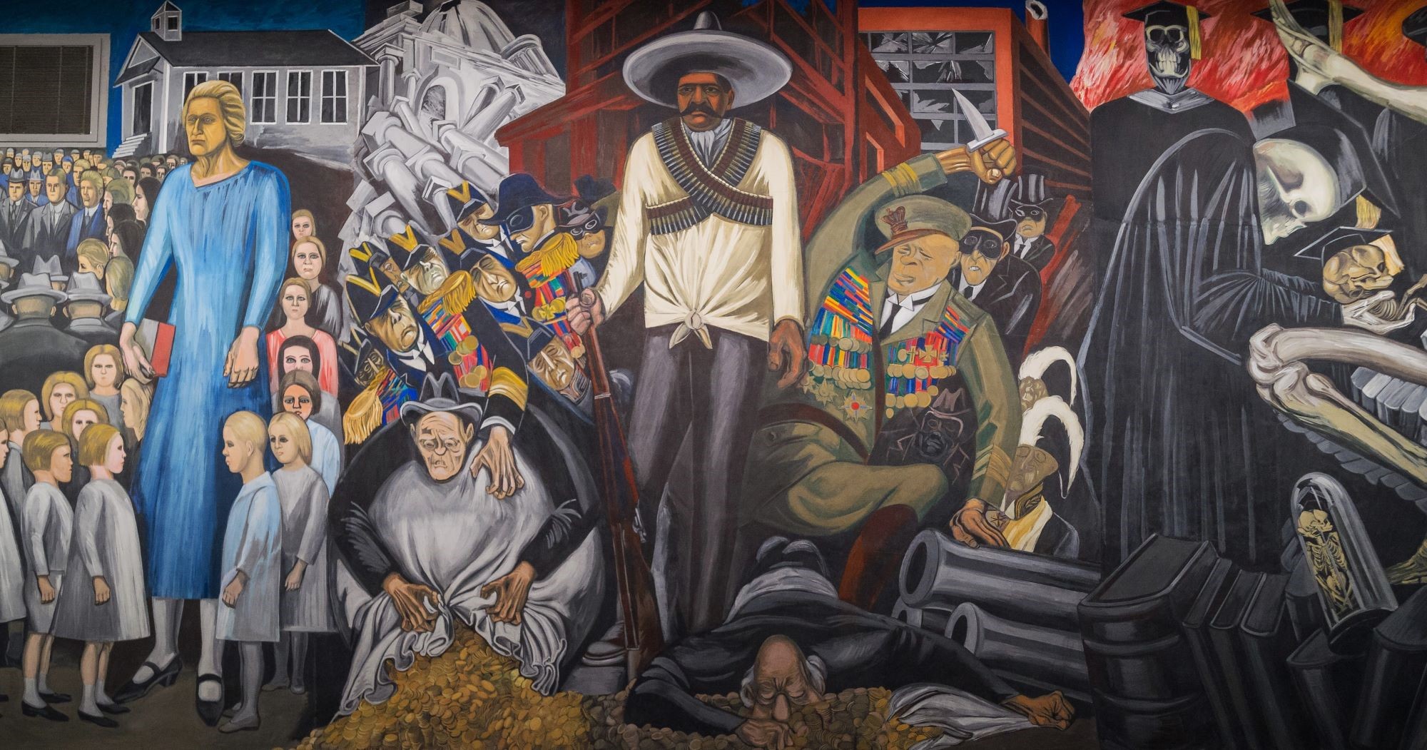 Dealing with the epic theme of Man and Culture on the American continent, these frescoes are a vast indictment of contemporary civilization. The indictment proceeds from a humanitarian semi-anarchist viewpoint and attacks with extraordinary force and sincerity the whole of bourgeois culture, including patriotism, religion, imperialism and their subservient academies.