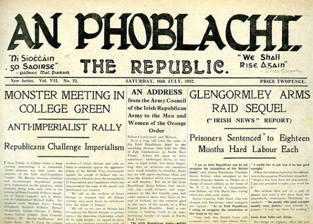 We have in the document covered the ground from 1782 to 1932. An important question raised in the manifesto is the international allies of the Irish people. And if we go into the past we will find that this was not the only time we had international allies. The capitalists do not like internationalism, but they are already at Rome, and for a definite political purpose. It is not for the internationalism of Jesuitism or Rome that we stand, but for the international fight against imperialism, and with the millions of our Irish emigrants abroad in exile. It is an internationalism that brings us into direct contact with the first country to break with imperialism–the U.S.S.R. International working-class unity is in line with the best traditions of the Irish struggle. Some people will say: “Why not cut out all the talk about Russia?” But this would not solve anything. It is not only that the Communists speak of the achievements of the Soviet Union. If it were only talk, the capitalists would not mind, but it is the living fact of the Soviet Union which raises the question so sharply, which makes the capitalists write so much about Russia. The capitalists would like to prove that this one country which has destroyed the rule of the imperialists could not succeed under the rule of the workers. They cannot do this, so they bring in the question of religion. Rather should we say to those who declare to us: Why not stop talking about Russia? Why don’t you demand that the capitalists stop waging slanderous attacks on Russia and preparing intervention? We must note the success of the U.S.S.R. as a powerful weapon in our hands. Then we hear that it would be better not to use the name “Communist.” The rulers used the same tactics against Tone and the Republican movement, so what can we expect them to say about the workers’ party? The C.P. is the only way forward, and the capitalists have made Communism the bogey because it menaces them. The Saore Eire was a body of workers and farmers, but it, too, soon came under the barrage of the bogey-makers. It is not the name but the content of the Party they fear, and they would denounce the St. Vincent De Paul Society if that body attempted to try and solve the social problems of the people. We are going forward, and the campaign against us cannot stop the class fight in Ireland and the growth of the Party. We ought to learn from the old parties. Sinn Fein could see that the course of events would bring them to the head of the mass fight.