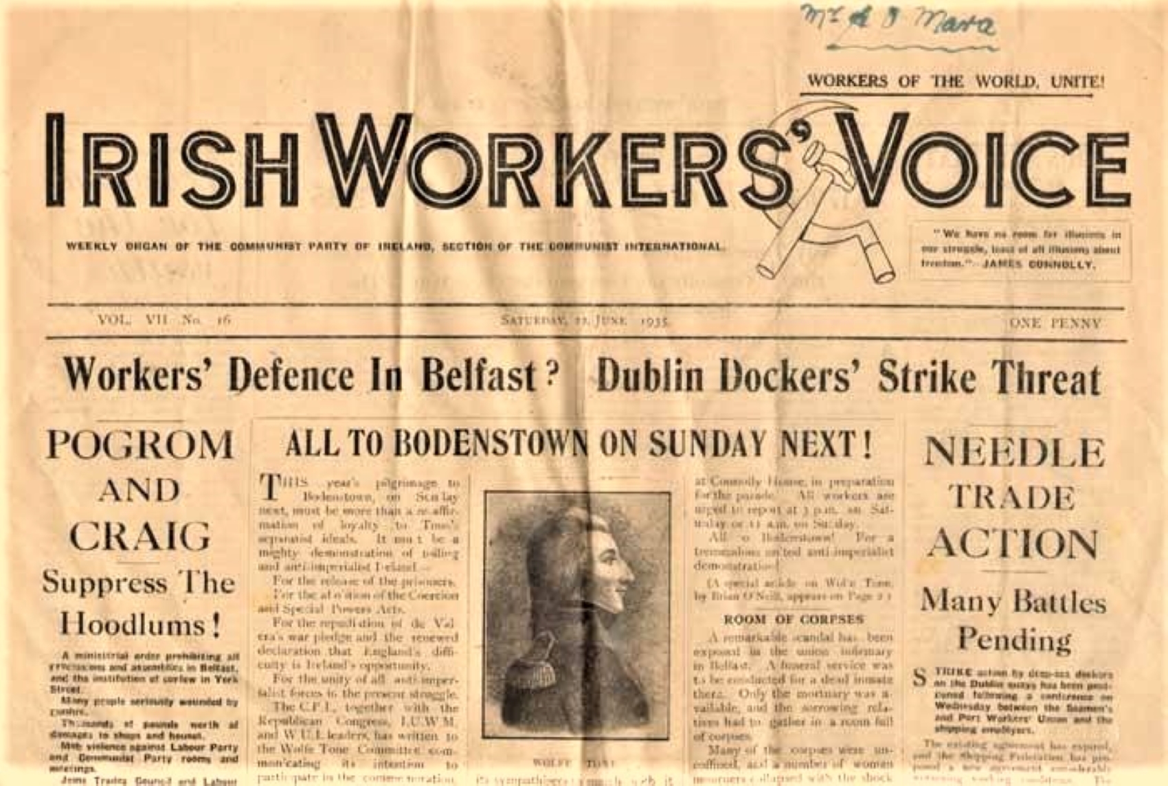 We meet to bring into being the General Staff of the whole of the struggle of the Irish working class and working farmers. The Congress is of significance not only to the Irish working class, but is also of great importance to the workers and peasants throughout the British Empire struggling against British imperial- ism. We have in Ireland great traditions of revolutionary struggle, but until now the Irish working class have not had the necessary revolutionary leadership which only the Communist Party and the Communist International can give. We meet today to give that leadership to the Irish workers’ struggles. Our Party has the historic duty of leading the working class of Ireland in the development of the struggle for the emancipation of the Irish working people and the socialist revolution.