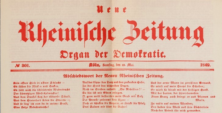 In the meantime Marx had continued in the Brüsseler Zeitung his attack on the Prussian government, and again the Prussian government demanded his expulsion — but in vain, until the February revolution caused a movement among the Belgian workmen, when Marx, without any ado, was expelled by the Belgian government. The provisional government of France had, however, through Flocon, invited him to return to Paris, and this invitation he accepted. In Paris he remained some time, till after the Revolution of March, 1848, when he returned to Cologne, and there founded the New Rhenish Gazette — the only paper representing the working class, and daring to defend the June insurgents of Paris. In vain did the various reactionary and Liberal papers denounce the Gazette for its licentious audacity in attacking all that is holy and defying all authority — and that, too, in a Prussian fortress! In vain did the authorities by virtue of the State of Siege suspend the paper for six weeks. It again appeared under the very eyes of the police, its reputation and circulation growing with the attacks made upon it. After the Prussian coup d’état of November, the Gazette, at the head of each number, called on the people to refuse the taxes, and to meet force by force, For this, and on account of certain articles, the paper was twice prosecuted — and acquitted. Finally after the May rising (1849) in Dresden, the Rhenish Provinces, and South Germany, the Gazette was forcibly suppressed. The last number — printed in red type — appeared on May 19th, 1849.