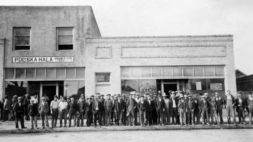 On the ground floor is the “hall”, where meetings packed to overflowing, are held twice daily, at 2 p.m. and 7 p.m. The meetings are particularly interesting. Immediate questions of the day and of the strike are threshed out ably and forcefully. A fiery speech from a Spaniard brings forth an ardent response not only from the Latin element, but from the Slav and the Nordic as well. The enthusiastic “sings” make the meetings lively affairs and Solidarity is their favorite song!