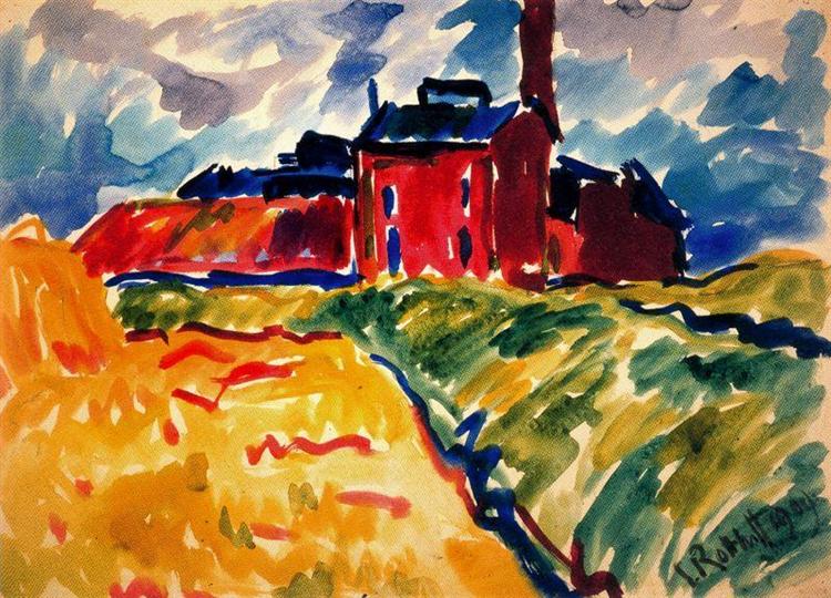 Back in 1903, three young painters of Dresden founded a new school of painting. With the usual fanfare of manifestos, protests, and a scandal over their first exhibition (1906) held in a store for lighting fixtures, they were born as Die Bruecke–the bridge between the old world and the new. Their names were Karl Schmidt-Rottluff, Ernst Ludwig Kirchner and Erich Heckel. Appearing almost simultaneously with the Fauves in France, the Expressionists emphasized the subjective revolt of the individual. Later they took over many of the technical innovations of the Fauves-the use of broad masses, the demand for monumental pictures which stretched the limits of the easel, the use of complementary color in brilliant juxtaposition unhampered by local color; the distortion of form to evoke emotional response. They were joined by other enthusiastic painters, among them Max Pechstein and Emil Nolde and all of them later made art history. Their most powerful influences in painting were van Gogh; the Swiss painter, Hodler; and Edvard Munch, that strange Norwegian, whose spectral evocations on canvas are curiously akin to Strindberg’s nightmare dramas.