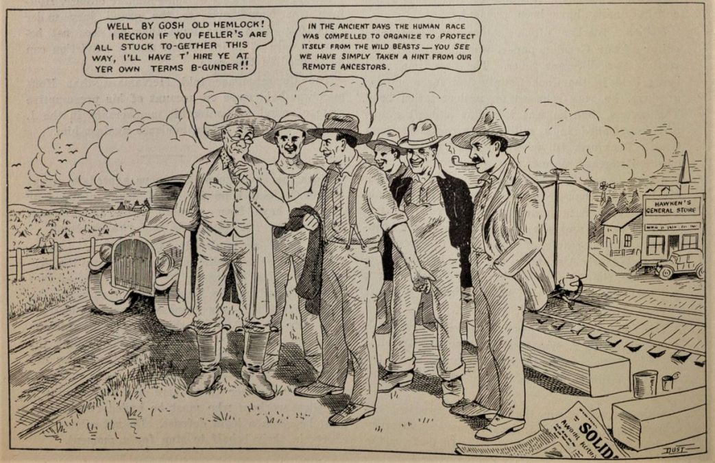 Those not on the Dakota firing line cannot believe the progress in agitation and organization being made this year. Practically everywhere our organization is the topic and men are joining as soon as they get the money. If the progress being made continues the A.W.O. can have a closed shop and an open union in the harvest next year, as one-half of the harvest workers will be organized. In the groups of fellow workers I have met over fifty per cent were men brought in during the last six months and a finer bunch of men never belonged to any organization. The A.W.O. is organizing the cream of the harvest workers, and this year’s organization is but begun. A greater average per centage of our members are on the job than of the unorganized and, they are getting results. In some towns, such as Carrington, N.D., more than half of the men on the job are organized. Everyone is doing his share. All are displaying a teamwork that is a lesson in solidarity. The petty bickerings that arise when large numbers of men are idle are not in evidence in Dakota. Industrial freedom is not a dream here; but a possibility of the near future, as the working class are awakening as never before. Clear-eyed and unafraid they are beginning to face the future, and in it they see not slavery but industrial democracy. An awakened working class will not remain in slavery. The solidarity of the working class is near.