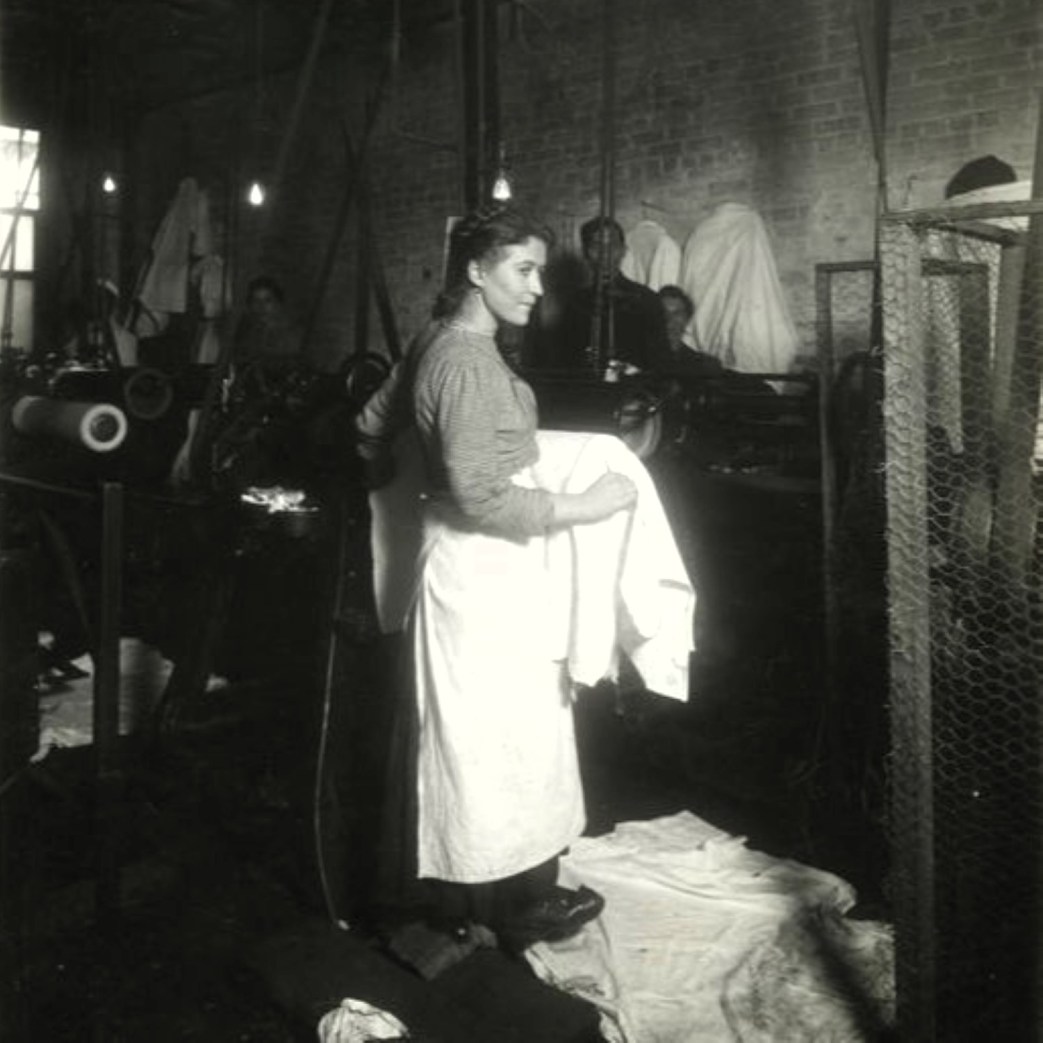 The washing department, where the men washers work, is in most cases in dark cellars. The floor is wet. The steam is choking. Before leaving these cellars the workers have no place where they can rest and cool off a little. They must enter the cold street air all in a perspiration, and the contraction of a cold, pneumonia and tuberculosis is almost inevitable sooner or later.