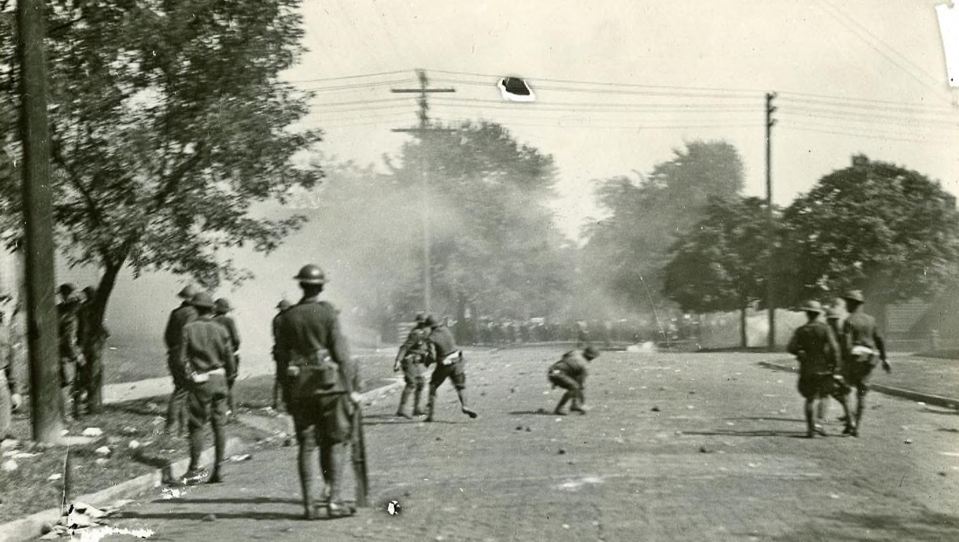 But here is a story that will illustrate the militancy, the spirit and above all the solidarity of the working class in Toledo. One night during the continuous six day and night battle, one of the strikers spotted a group of National Guardsmen. He picked up a brick and hurled it, hitting one of them. The other Guardsmen immediately started for him. The striker ran into an alley back of a house. Of all alleys in the neighborhood, this striker unluckily ran into a blind alley. The guardsmen advanced upon him bayonets set and it looked as though a long prison term awaited this worker. Cornered, the striker thinking quickly, stepped over a low fence. “Get to hell off my property and leave me alone,” he ordered the guardsmen. “You sure this is your property?” “You’re Goddam right this is my property and you better not come on here.”