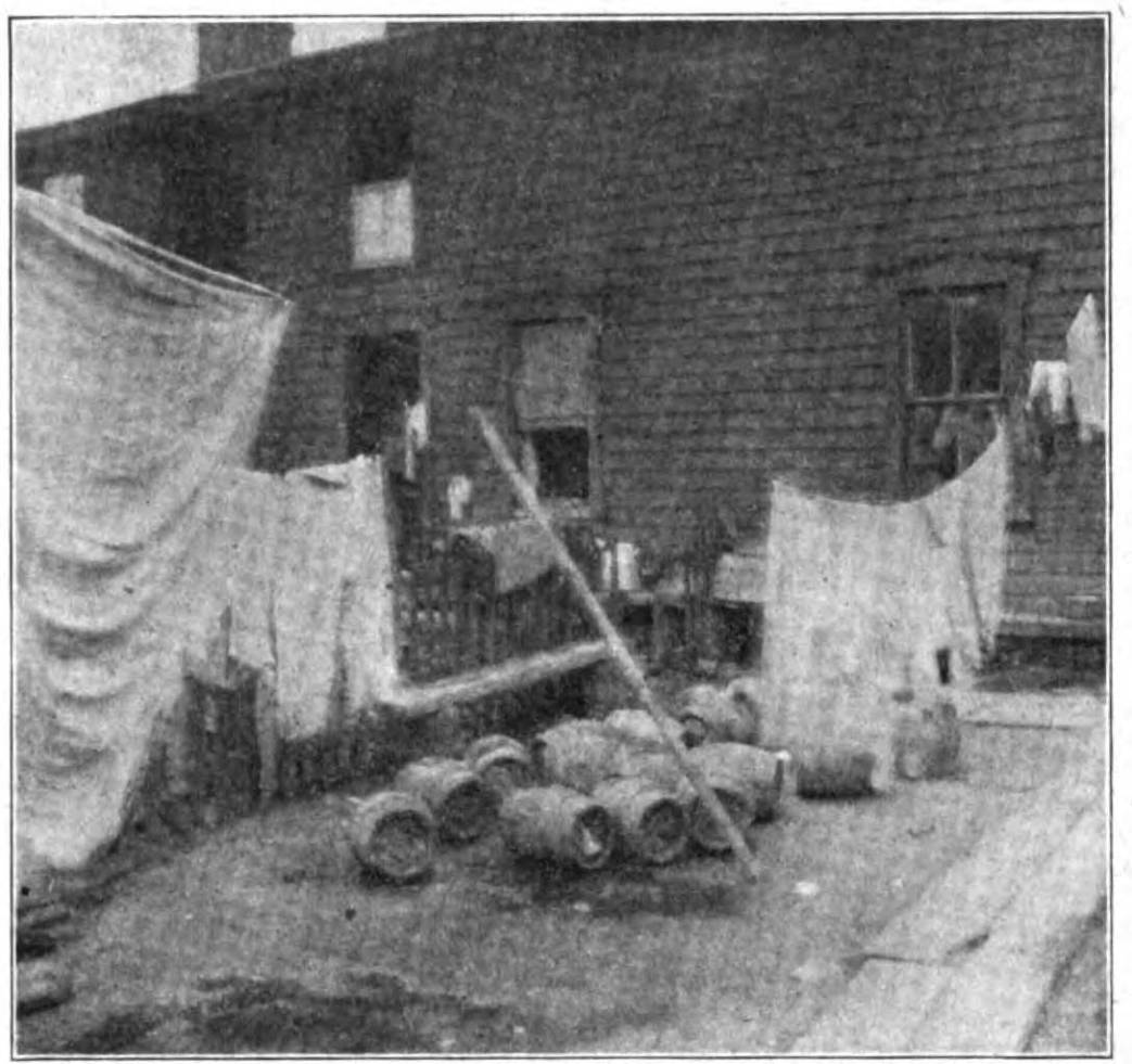 The evening before my visit an accident happened killing two men and injuring eight others. One of the long girders had slipped, that was all. It happened at six P.M. and even the coroner was not admitted when he called to inquire into the cause of the accident. At two o’clock on the next day, I went to see Hunkey town in Ambridge—as wretched and mean a place as a very new slum can manage to become in so short a time. There were rows of crowded tenements and other long rows of box-like houses, all containing four rooms. Every room swarmed with foreign workmen. In some cases the beds never grow cold, as they are used by day and night shifts in turn. The workman who could speak a little English told me that upstairs in one of those crowded rooms lay one of the seven men who had been injured by the accident of the evening before. His neck had been deeply lacerated, almost cutting the jugular vein. They told me that he was wild with delirium. They were waiting for the company doctor, who had promised to come at three o’clock. The little hospital of two rooms inside the works’ enclosure had been too full to give him a berth when he was hurt, so they sent him “home.” And eighteen hours later the company doctor was being expected to care for the wounded man in the foul room which he shared with four other men.