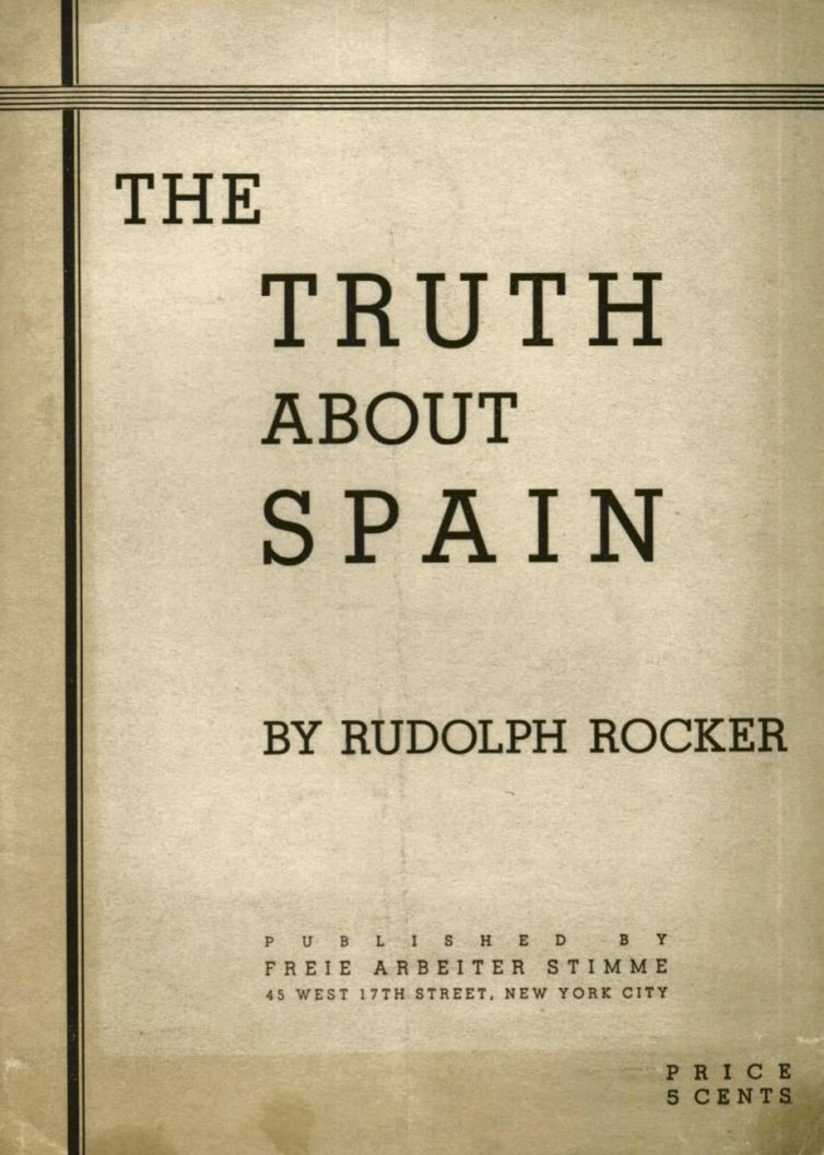 The Truth About Spain by Rudolph Rocker. Published by Freie Arbeiter Stimme, New York. 1936.