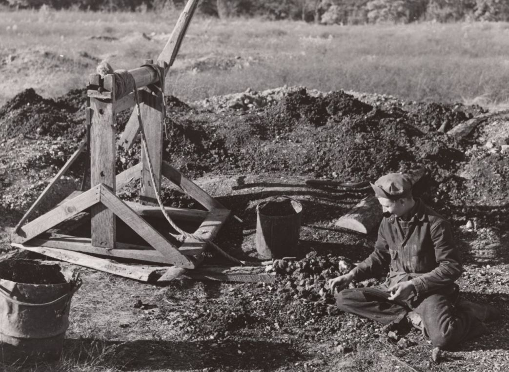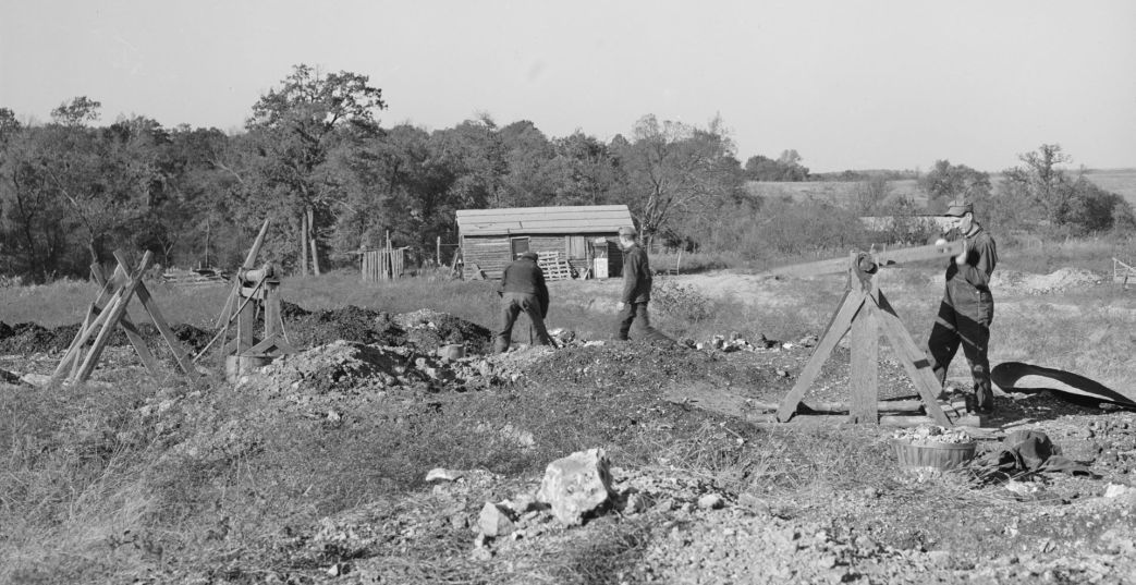 Some primitive accumulation in the hills of Missouri as the earth is dug for tiff (baryte), a mineral used in many products and industrial processes, by the poorest of Ozark mountain folk.
