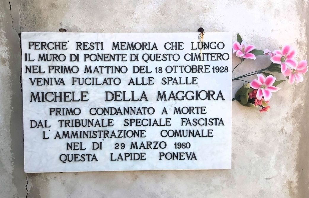 Brought to the place of execution, Comrade Della Maggiora got off the car very swiftly. He walked through a triple line of Fascists with his hands tied. He looked straight into the eyes of those he knew as he walked towards the post at which he was to be tied and shot.