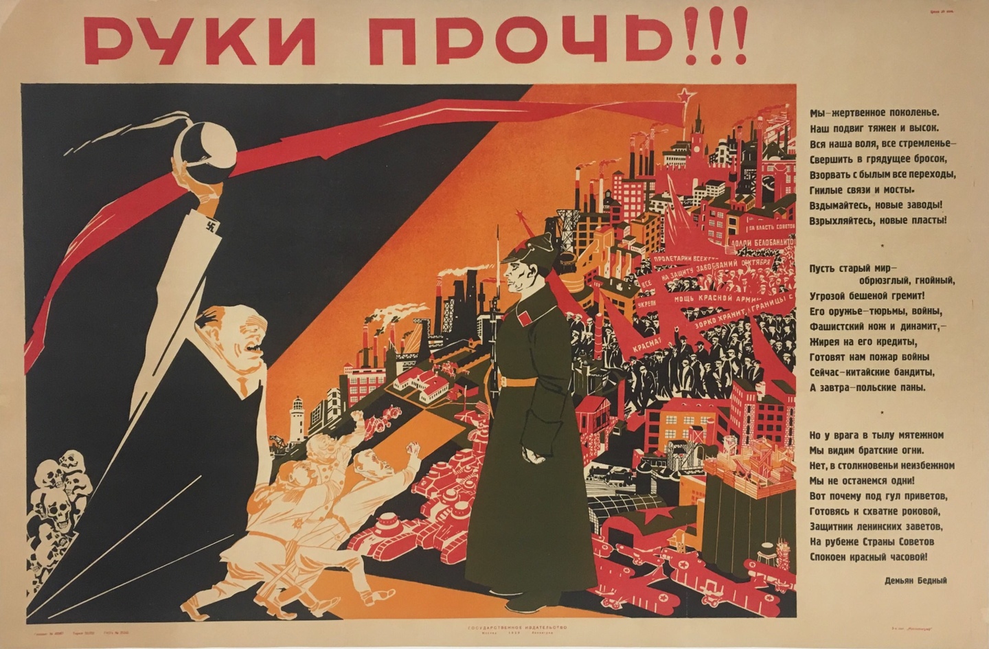 A notice recently appeared in the papers on “Red Imperialism”. This theme was first brought up by Kautsky who invented “the danger which threatens from Red imperialism”. This idea now crops up from time to time in other foreign newspapers. We must combat this stupid calumny with all the means in our power. It must be pointed out that as long ago as at Genoa, the Soviet Republic was the first country to propose the only possible plan for the complete disarmament of all States. We did the same in 1922 in the negotiations with our Baltic neighbours. Every worker within and without the Soviet Union should thoroughly understand that our Party is absolutely in favour of disarmament, that the Soviet Government will be the first to declare itself prepared to dissolve the armed forces of our country and to destroy our whole war industry, on the one and only condition that other countries do the same.