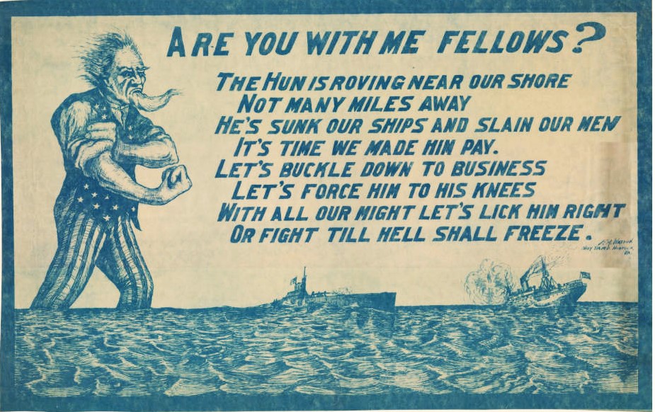 The imperial German government has warned these United States that the leisure-class American public which seeks to cross the Atlantic will be blown to a sudden death by German submarines, and many American workingmen have signified their desire to go over and lick the Germans for it.