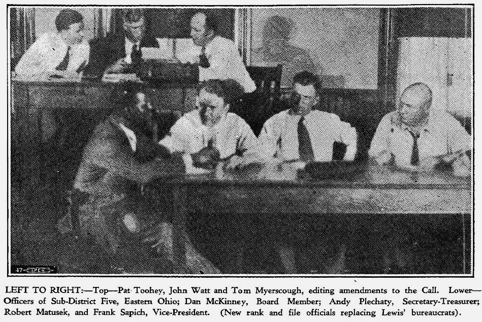 “We must organise a new miners’ union, one with an honest progressive leadership and a fighting policy. In this way alone can we organize the unorganised, resist wag cuts, bring about the 6 hour day and 5 day week, relieve unemployment, and establish a national agreement for all miners. Only a new union can shatter the control of the Lewis machine. Only with a new vigorous powerful union can we put a halt to the open shop drive of the operators and reestablish union conditions in the mining industry and prepare ourselves for the great struggles ahead in the industry.”