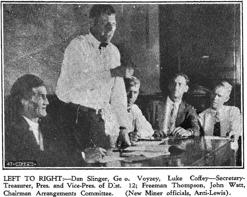 George Voyzey, Luke Coffey and Dan Slinger, progressive officers of the Illinois district, Charles Pryor of Indiana, Robert Matusek, Frank Sepich and Andy Plechady of Ohio, Charles Close of West Virginia, S.T. Wakefield of Kansas, Charles Allander of Colorado, Tom Rodgers, Steve Simons and Killingern of Portage Pa., John Watt, Pat Toohey, Anthony Minerich, Vincent Kemenevieh, Fred Siders, Isaac Munsey and Freeman Thompson, all known to the rank and file for many years as militant fighters, and Milton Chicka of the recently organized Westmoreland County Miners Union, are among those who participated in the National Conference June 12 at Pittsburgh and signed the call for the Convention which will organize the new union.