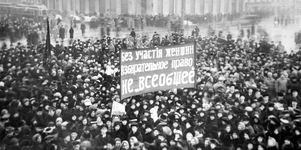 On February 23rd (March 8th), “International Women’s Day”, a strike was declared in the majority of the factories and works. The women were in a determined fighting mood; not only the women workers, but also the masses of women who had had to stand in the queues for bread and petroleum. They held meetings, they dominated the street, marched in the direction of the Duma building, and demanded bread, they held up the tramway traffic. “Come out, comrades!” was their energetic cry. They entered the workshops and factories and fetched out the workers. Altogether this “women’s day” was exemplary, and the revolutionary spirit began to rise from that day onwards.