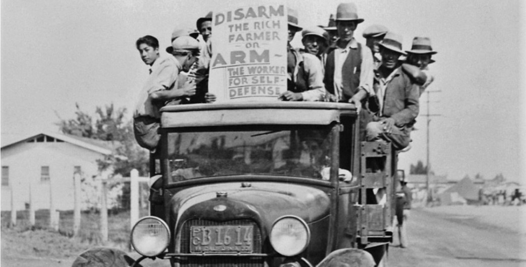 From October, 1933’s Trade Union Unity League-led Cannery and Agricultural Workers’ Industrial Union harvest time strike of cotton pickers in the San Joaquin Valley. Sheriffs handed out guns and permits to the white ranchers and their employees as they evicted strikers from the company homes. Three strikers, Dolores Hernàndez, Delfino D’Ávila, and Pedro Subia were killed, and many more wounded in the reaction. Ed Royce reports.
