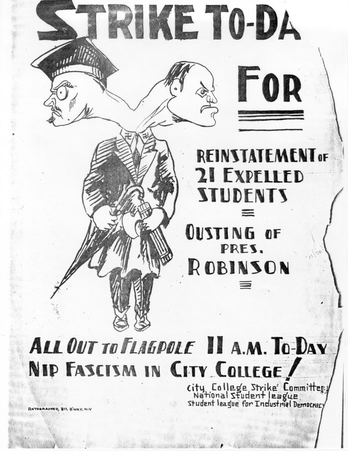 In view of the tremendous interest the City College affair has aroused throughout the country both as an unprecedented instance of administrative violence and as a symbol in the struggle against militarism in education, the expelled and suspended City College students herewith set forth the facts of the situation and call upon the public opinion of the nation to organize in support of the fight for their reinstatement and the restoration of academic liberty to City College.