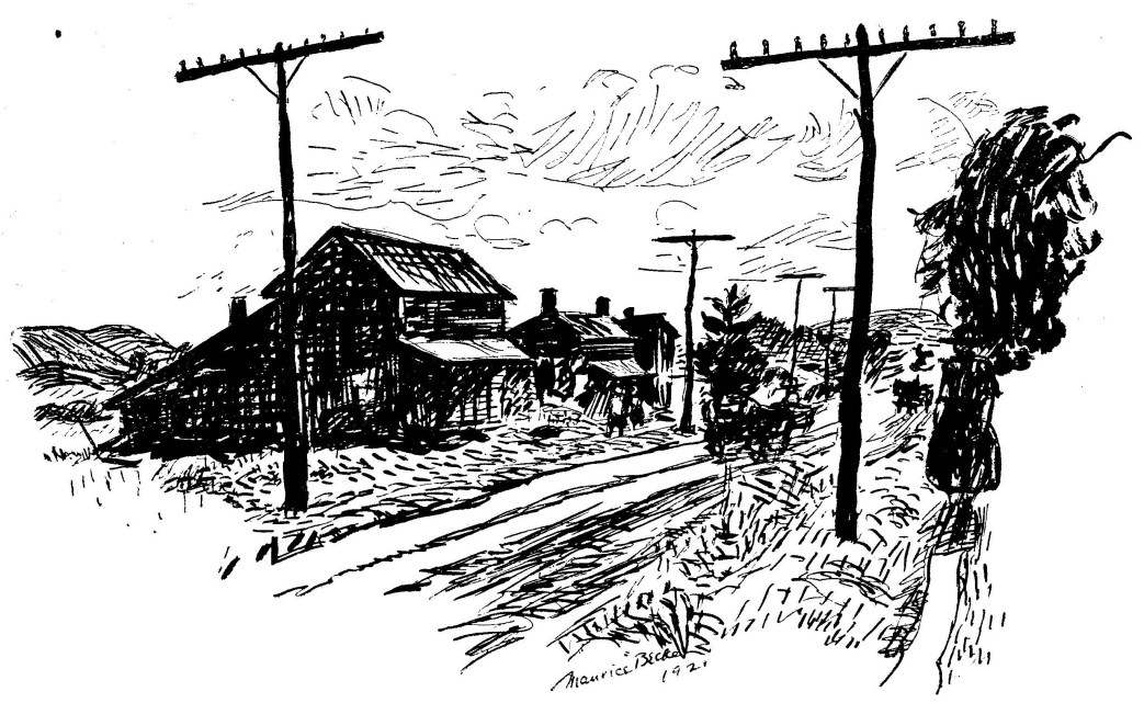 From the five o’clock morning train I alighted at the little. double row of stores and houses that are called Matewan, and before the town was astir I took a walk to the middle of the bridge over Tug River. There boy asked me, “Is it true they got two more thugs up the road last night?” I turned back to talk with the boy, and then I saw a man on a bench before a building on which was scrawled in red letters, “U. M. W. of A.” This man’s face limbered up when I told him I was a friend of Fred Mooney, Secretary of the Mine Workers at Charleston, and he said, “I sized you up as a friend of the Union and I’m glad you didn’t go further across the bridge, because you might have got shot. That is Pike County, over there.”