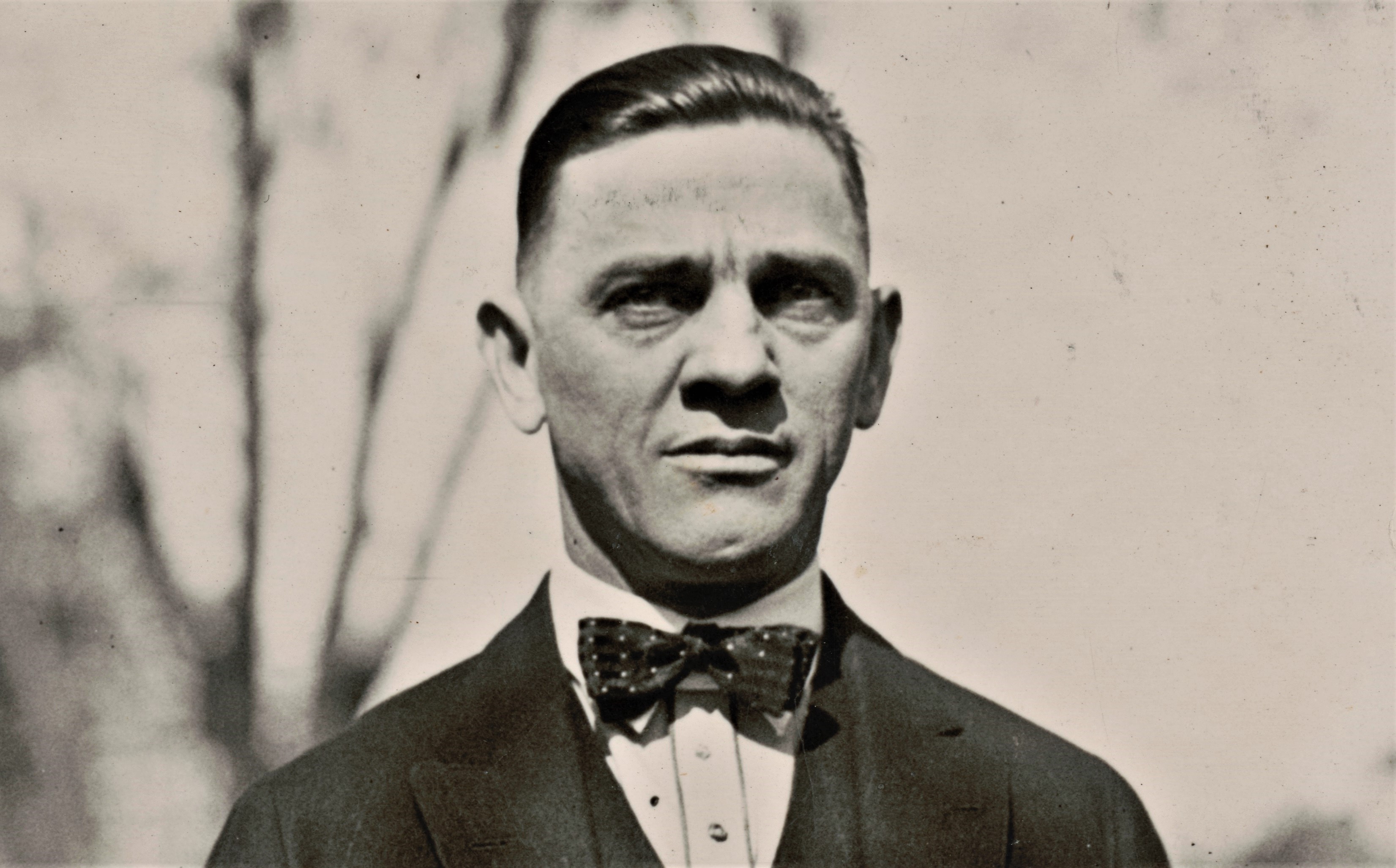 Toward nine o’clock I saw, standing near the railroad track, a middle-sized man of age about twenty-two. Although this man was alone, he was continually smiling. When he moved, his vest was displaced and exposed two Smith & Wesson revolvers, one stuck into each side of his trousers; A coal digger introduced him as Chief of Police Sid Hatfield.