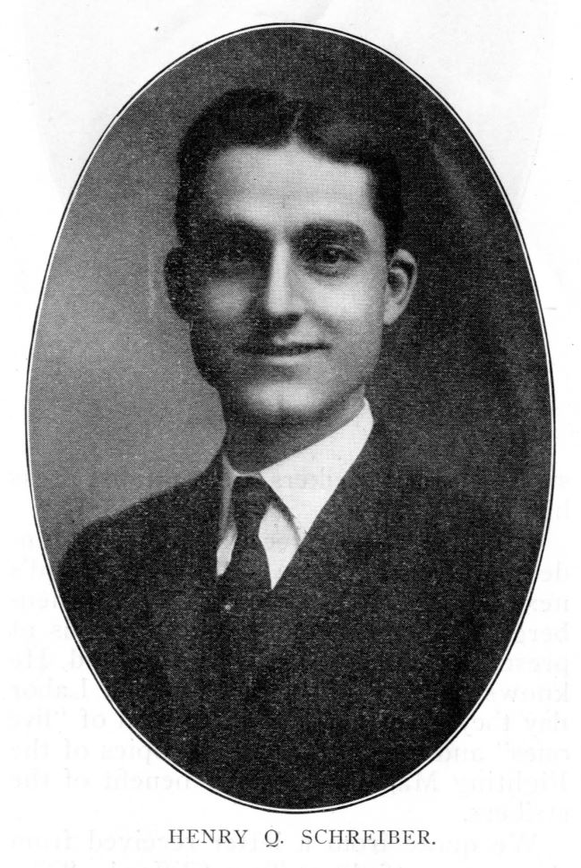 Comrade Henry O. Schreiber is a clerk in a grocery, having graduated to that position from the clay bench of a pottery. His wife, an ex-school teacher, has been selected for the school board, and her chances for election are even better than those of her husband.