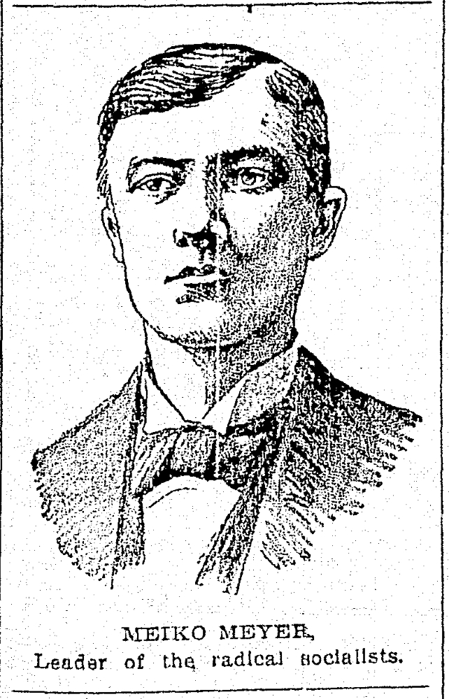 Meiko Meyer was among the most prominent Socialist Labor Party figures, serving on the national leadership of the S.L.P. and Michigan State Secretary. A factory worker in Detroit, Meiko often ran for office in the city, including for mayor.