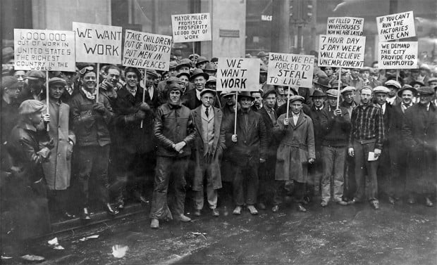 Many of these homeless youth have never seen the inside of a factory. Graduates of high schools and colleges, they could find no job. They could not eat the crumbs given their families for the younger children, and therefore hit the road. Hundreds of thousands more have been fired out of the factories. Older men have taken their places–men whom the bosses did not want a few years ago, but who now work for boys’ wages at speed which will kill them in a few years.